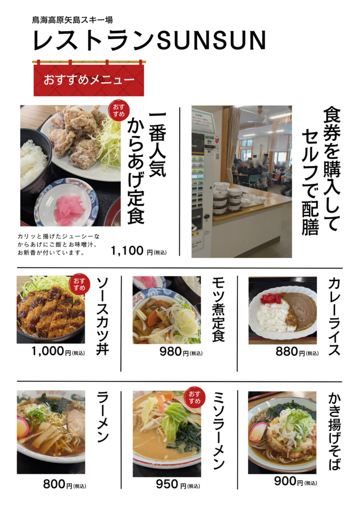SUNSUN 矢島スキー場店(メニュー)