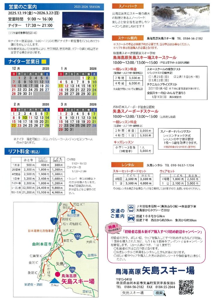 2025ー2026シーズンの鳥海高原矢島スキー場についてお知らせいたします。